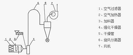 3:設(shè)備成套供應(yīng)。基本機(jī)型由空氣過濾器、加熱器、加料器、干燥管、風(fēng)機(jī)、旋風(fēng)分離器組成。材質(zhì)有A3鋼、鋁合金、不銹鋼帶三種,用戶可根據(jù)需要選型、選材,添置除塵器及其它輔助設(shè)備。